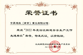 為表彰先進,進一步推動全街安全生產(chǎn)工作,經(jīng)街道安委會研究決定,對中昇建機(南京)重工有限公司等5家安全生產(chǎn)工作先進單位。